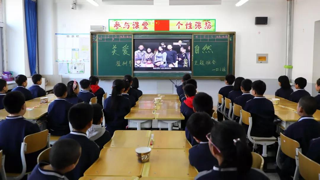 我校利用班会时间,班主任老师以植树节活动为契机,也再次向学生重申了节约资源、?;せ肪车闹匾裕⒆橹枪劭次⒌缬啊堆钌浦蕖?,以感动中国人物的先进事迹,让孩子认识到关爱自然的深远意义。